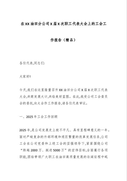 / 在XX油田分公司X届X次职工代表大会上的工会工作报告(精品)
