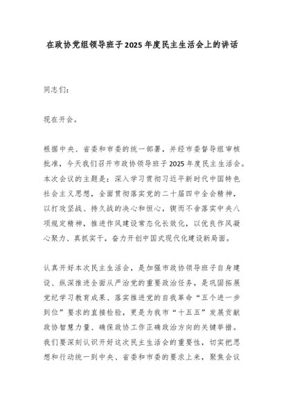 / 在政协党组领导班子2025年度民主生活会上的讲话