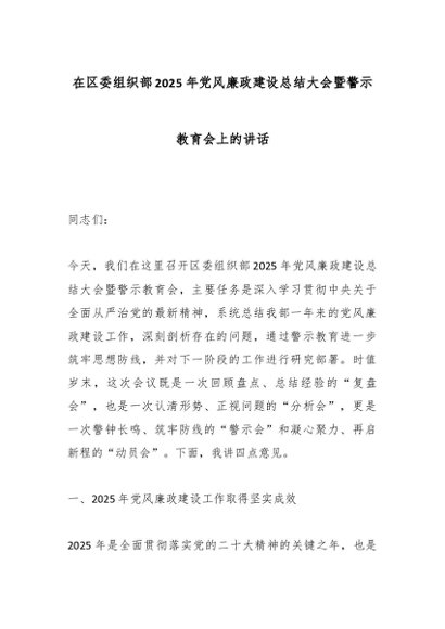 / 在区委组织部2025年党风廉政建设总结大会暨警示教育会上的讲话