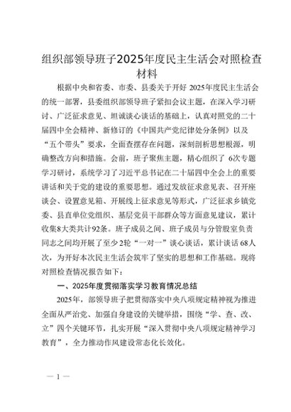 / 组织部领导班子2025年度民主生活会对照检查材料