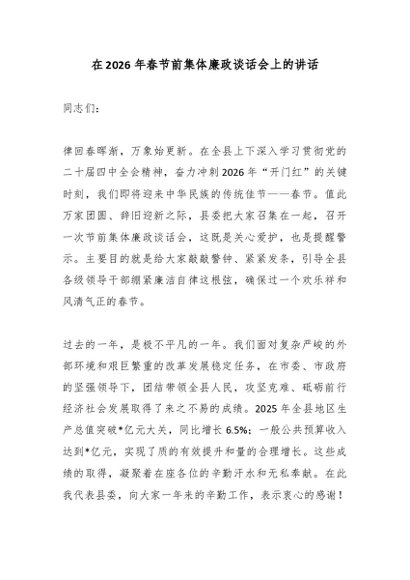 / 在2026年春节前集体廉政谈话会上的讲话