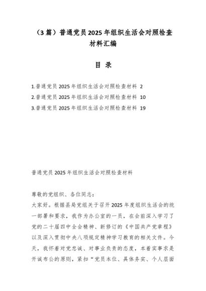 (3篇)普通党员2025年组织生活会对照检查材料汇编