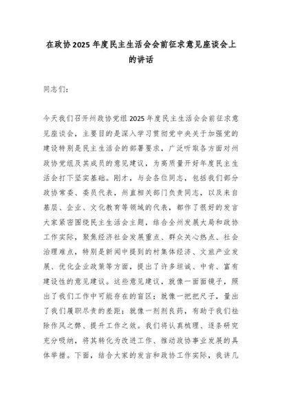 / 在政协2025年度民主生活会会前征求意见座谈会上的讲话