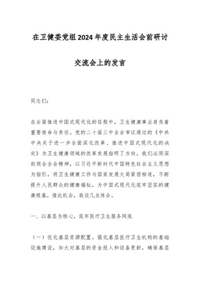 / 在卫健委党组2024年度民主生活会前研讨交流会上的发言