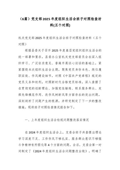 / (6篇)党支部2025年度组织生活会班子对照检查材料(五个对照)