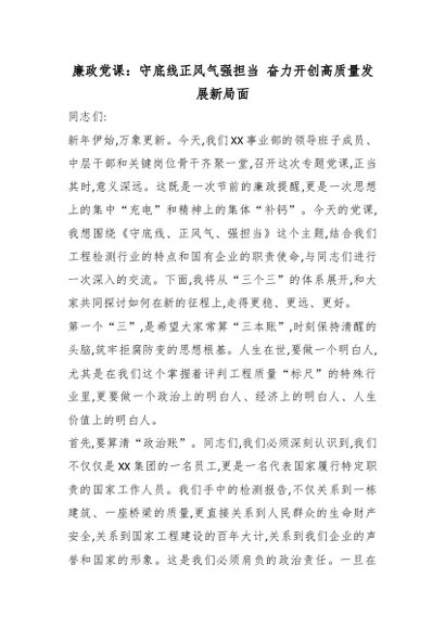 廉政党课:守底线正风气强担当 奋力开创高质量发展新局面
