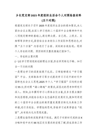 / 乡长党支部2025年度组织生活会个人对照检查材料(五个对照)