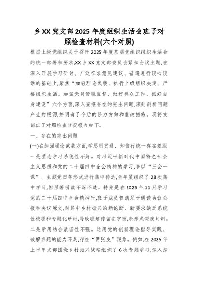 / 乡XX党支部2025年度组织生活会班子对照检查材料(六个对照)