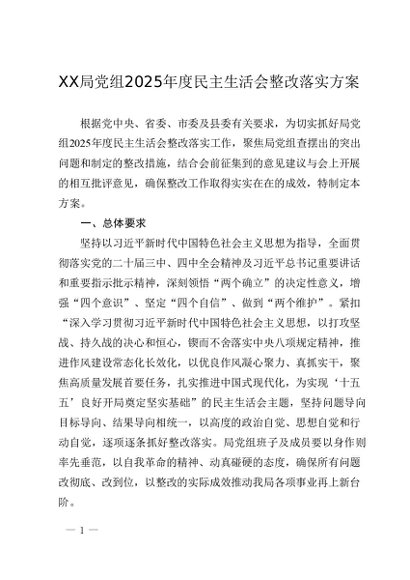 / 局党组2025年度民主生活会整改落实方案1