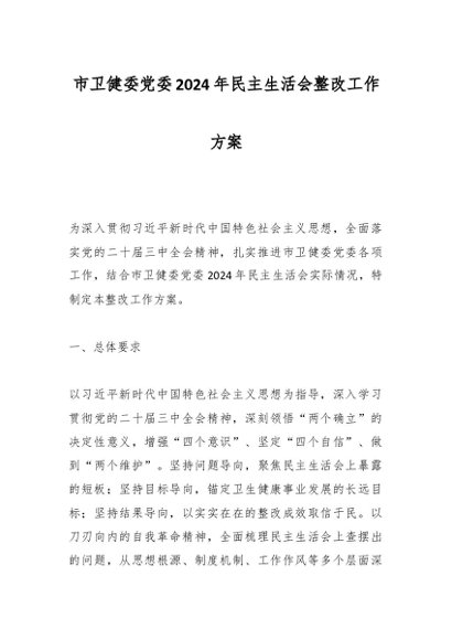 / 市卫健委党委2024年民主生活会整改工作方案