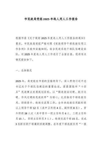 / 市民政局党组2025年选人用人工作报告