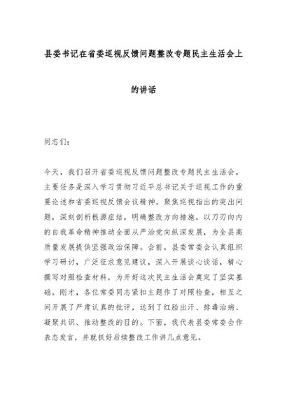 / 县委书记在省委巡视反馈问题整改专题民主生活会上的讲话