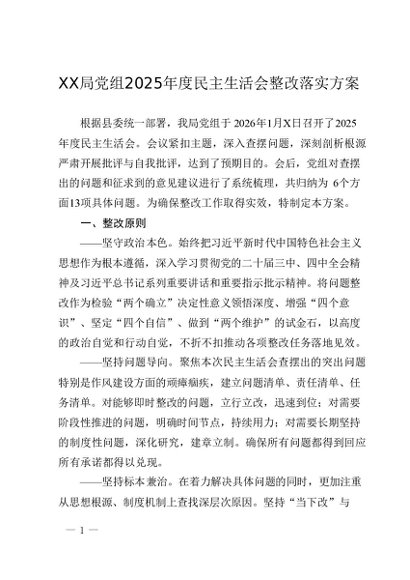 / 局党组2025年度民主生活会整改落实方案2