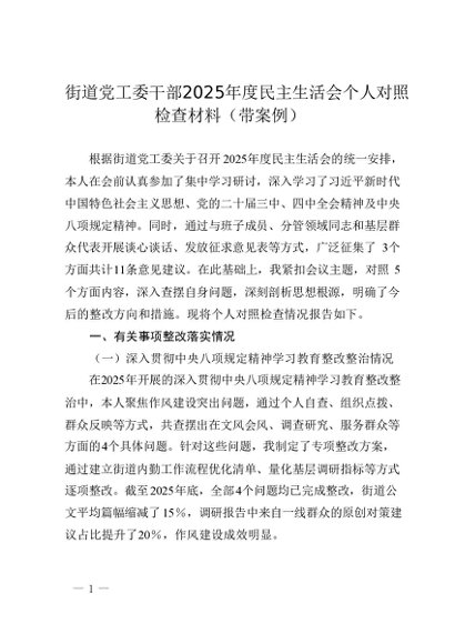/ 街道党工委干部2025年度民主生活会个人对照检查材料(带案例)