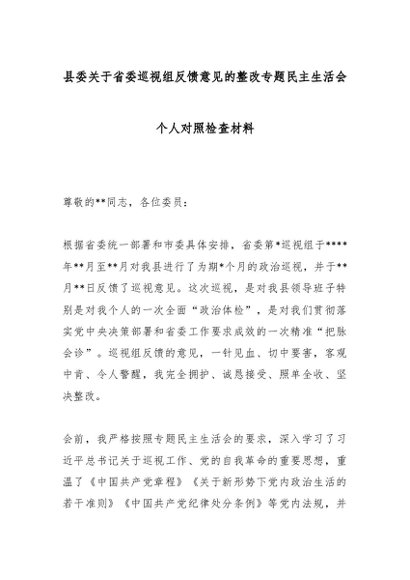 / 县委关于省委巡视组反馈意见的整改专题民主生活会个人对照检查材料