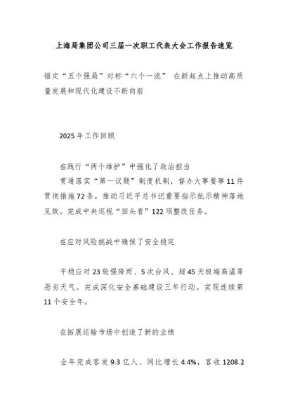 / 上海局集团公司三届一次职工代表大会工作报告速览