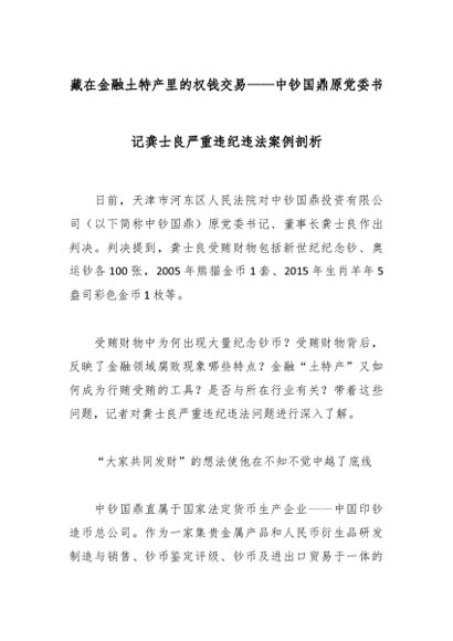 / 藏在金融土特产里的权钱交易——中钞国鼎原党委书记龚士良严重违纪违法案例剖析