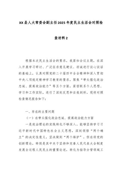 / XX县人大常委会副主任2025年度民主生活会对照检查材料2