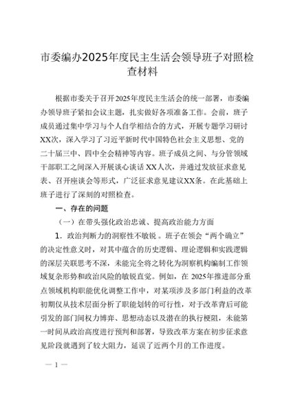 / 市委编办2025年度民主生活会领导班子对照检查材料