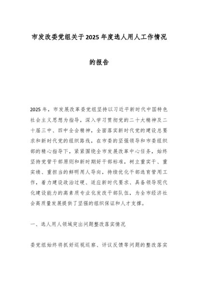 / 市发改委党组关于2025年度选人用人工作情况的报告