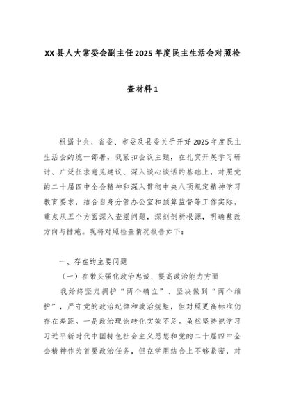 / XX县人大常委会副主任2025年度民主生活会对照检查材料1