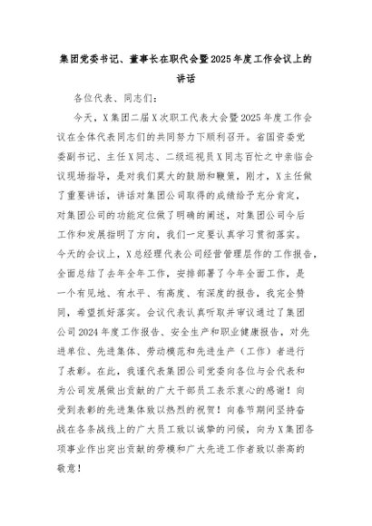 / 集团党委书记、董事长在职代会暨2025年度工作会议上的讲话