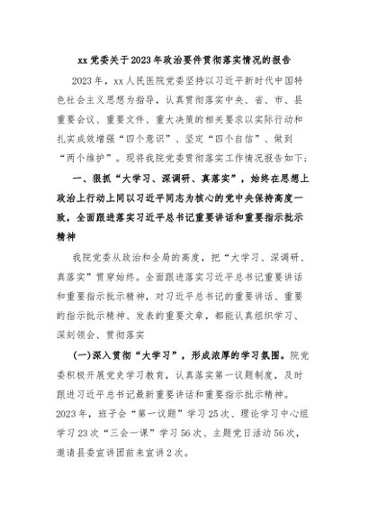 / xx党委关于2023年政治要件贯彻落实情况的报告