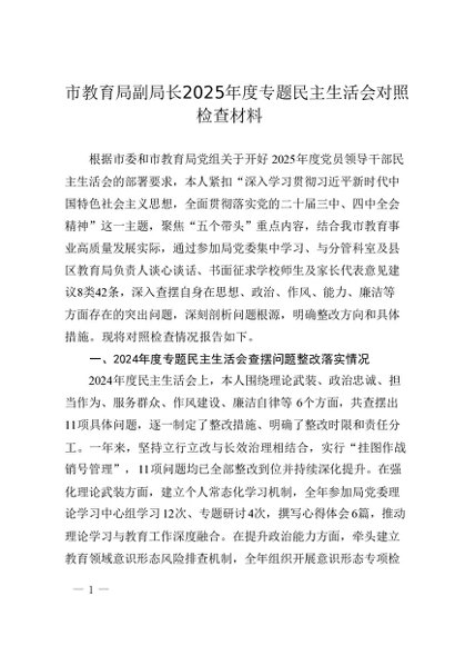 / 市教育局副局长2025年度专题民主生活会对照检查材料