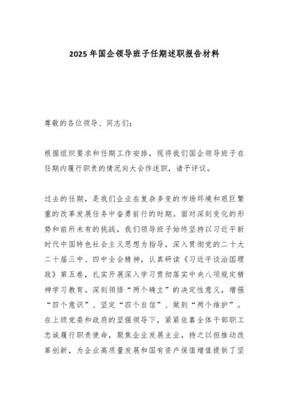 / 2025年国企领导班子任期述职报告材料