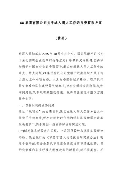 XX集团有限公司关于选人用人工作的自查整改方案(精品)
