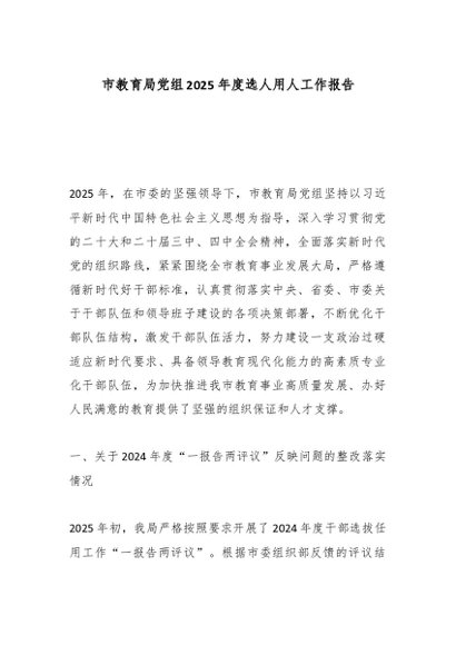 / 市教育局党组2025年度选人用人工作报告