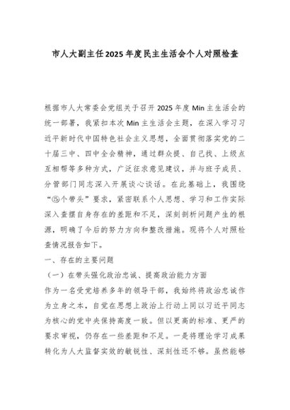 / 市人大副主任2025年度民主生活会个人对照检查