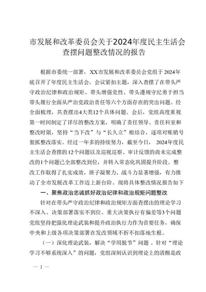 / 市发展和改革委员会关于2024年度民主生活会查摆问题整改情况的报告