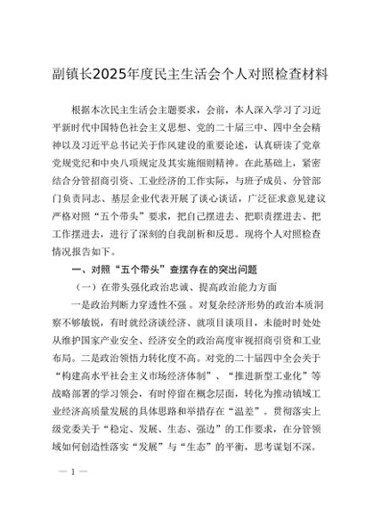 / 副镇长2025年度民主生活会个人对照检查材料