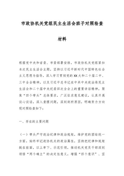 / 市政协机关党组民主生活会班子对照检查材料