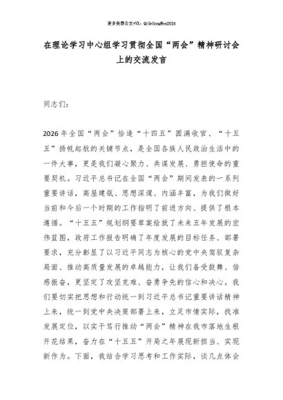 / 在理论学习中心组学习贯彻全国“两会”精神研讨会上的交流发言