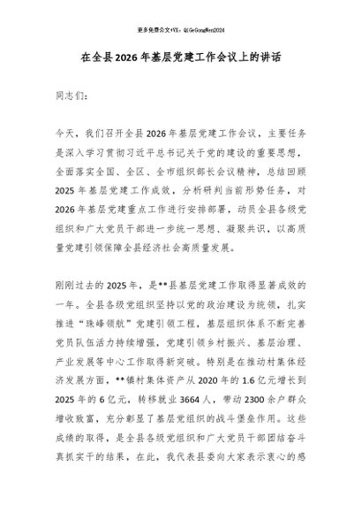 【七哥公文】2026年:XX集团在2026年度工作会议上的讲话+更多免费公文+VX:QiGeGongWen2024