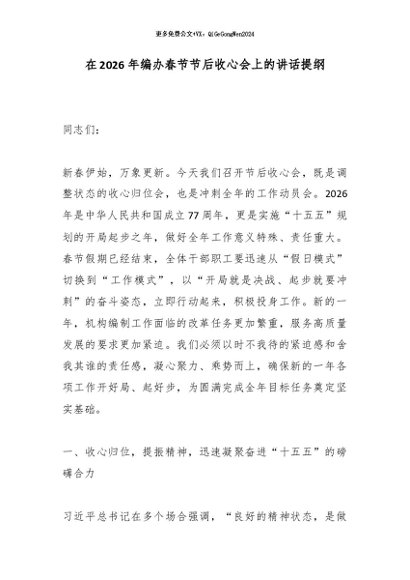 / 在2026年编办春节节后收心会上的讲话提纲