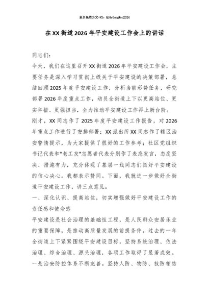 / 在XX街道2026年平安建设工作会上的讲话