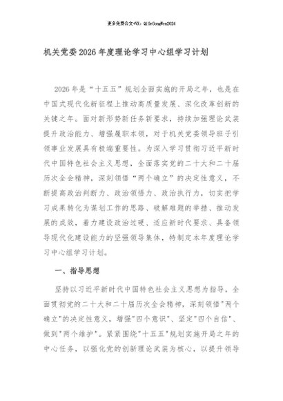 / 机关党委2026年度理论学习中心组学习计划