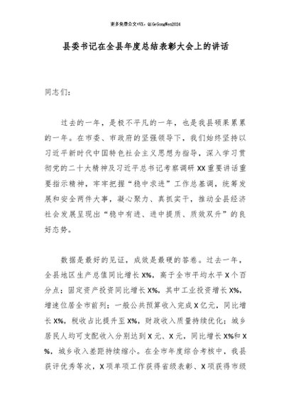 / 县委书记在全县年度总结表彰大会上的讲话