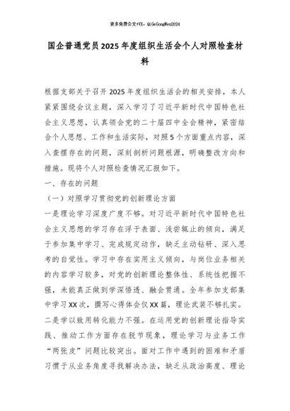 / 国企普通党员2025年度组织生活会个人对照检查材料