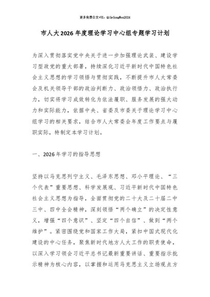 / 市人大2026年度理论学习中心组专题学习计划