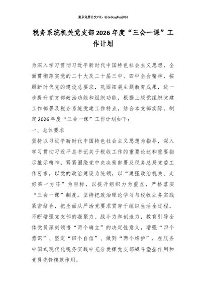 / 税务系统机关党支部2026年度“三会一课”工作计划