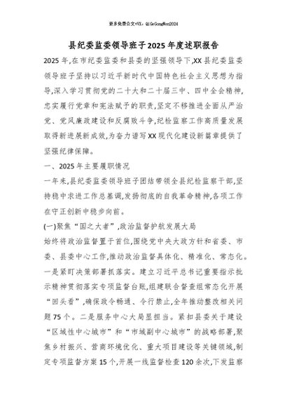 / 县纪委监委领导班子2025年度述职报告