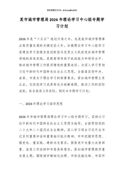 / 某市城市管理局2026年理论学习中心组专题学习计划