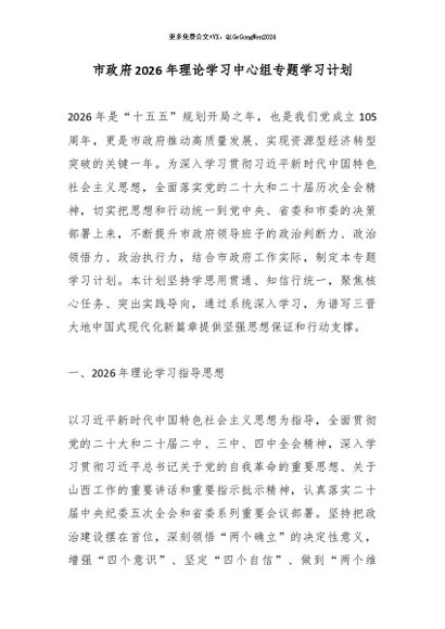 / 市政府2026年理论学习中心组专题学习计划