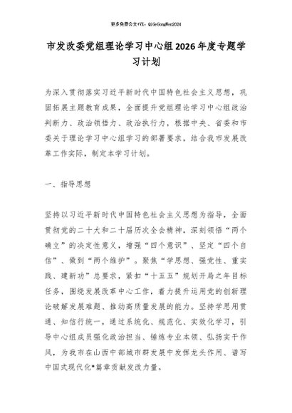 / 市发改委党组理论学习中心组2026年度专题学习计划