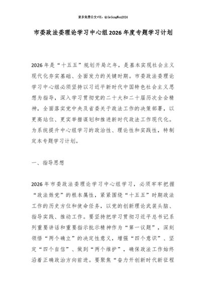 / 市委政法委理论学习中心组2026年度专题学习计划