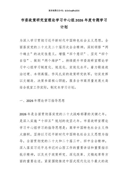 / 市委政策研究室理论学习中心组2026年度专题学习计划